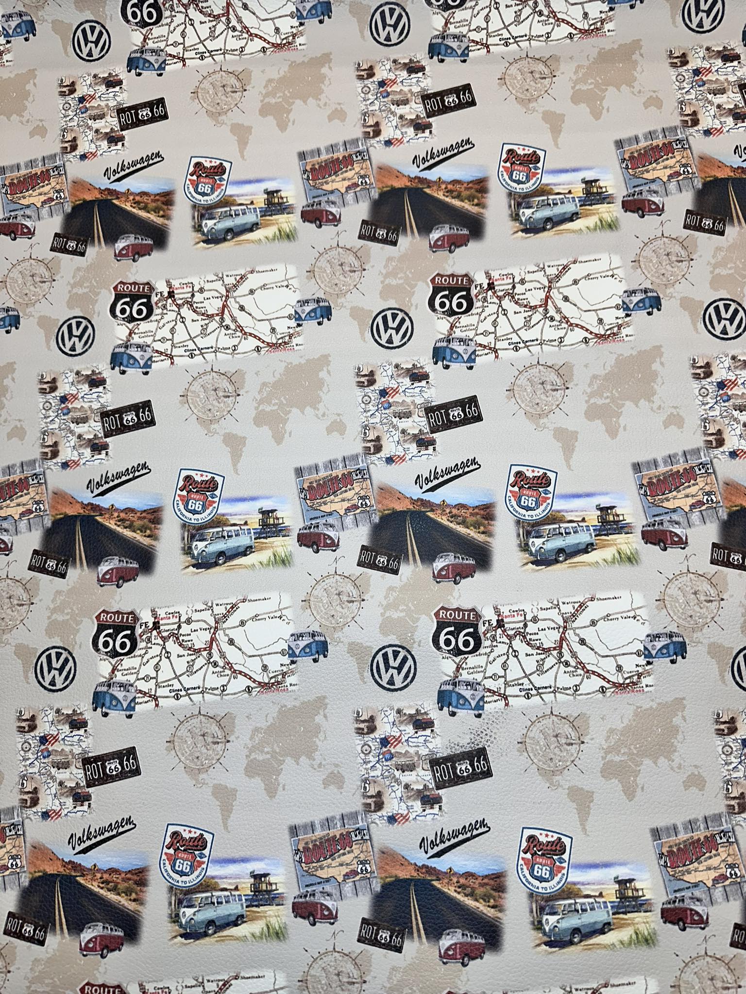 Napa Estampada Route 66 Bege Claro 140cm